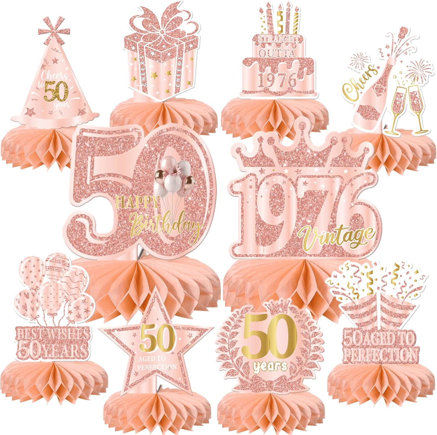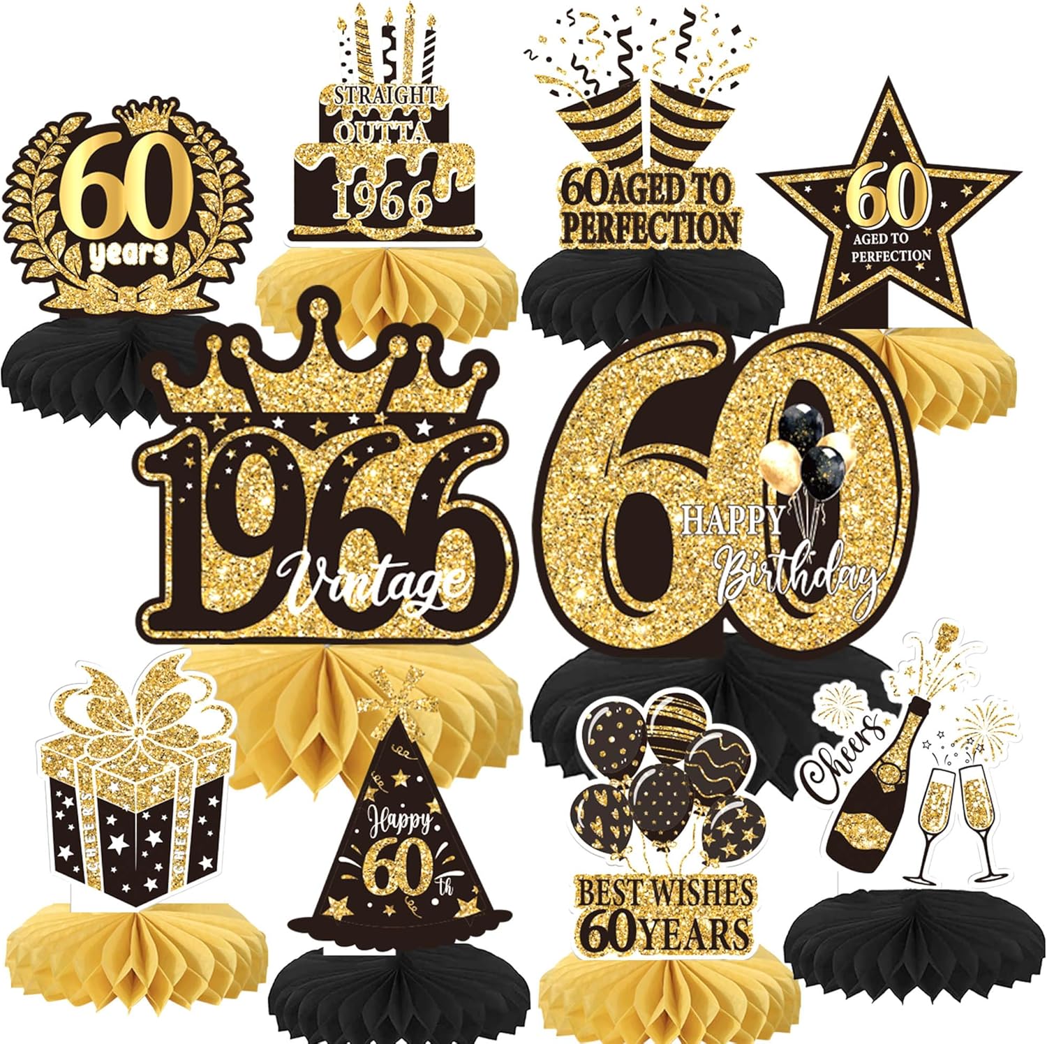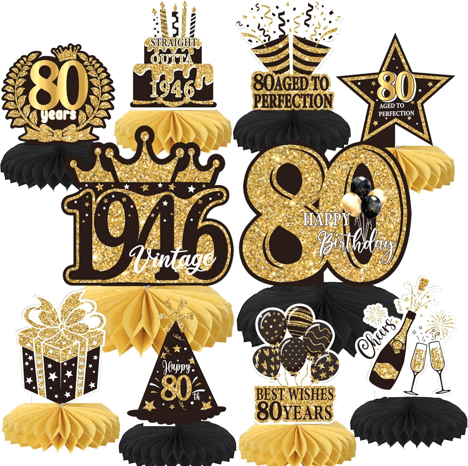 Package and Size Package includes 10 pack happy 100th birthday honeycomb centerpieces. ample quantity can meet your needs, the size is shown in picture 3 ( with stick ) Material and Application These honeycomb centerpieces, are made of are made of sturdy card stock and vivid printing technology, These honeycomb centerpieces are perfect for men and women 100th birthday theme party, vintage straight outta 1926 theme party, cheers to 100th anniversary party table decorations. Important Note Due to the light and screen difference, the item's color may be slightly different from the pictures. These honeycomb centerpieces are for decoration purposes only, not edible and do not place in oven or use for baking. These honeycomb centerpieces are made of tissue paper and the top is made of quality cardstock with adorable and vibrant pattern and bright color on it, durable and sturdy. Rsstarxi is our own brand, which is registered on amazon. The purpose of our brand is make your party attractive and interesting, Our highest priority is your satisfaction!