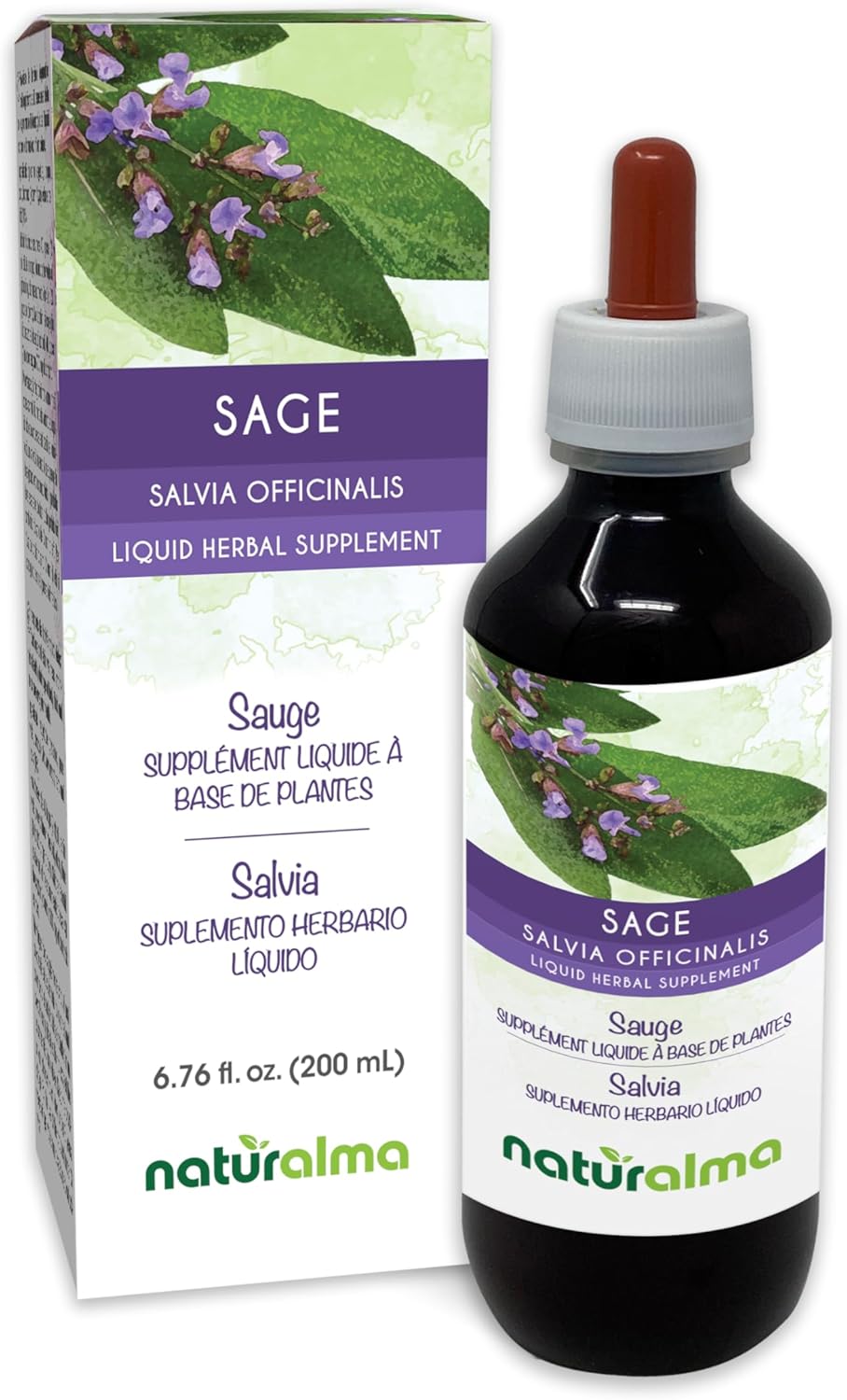 Sage (Salvia officinalis) leaf Liquid herbal supplement in drops, consisting of a concentrated liquid extract (tincture 1:10), highly pure and 100% natural. All NATURALMA liquid extract or tinctures are made using an exclusive extraction method, which allows to obtain the maximum concentration of active ingredients. They are 100% alcohol-free and totally natural. Pleasant-tasting and without added sugar. Our herbal supplement are produced and packaged in Italy. Our liquid extract are free of: Alcohol, Animal products, Flavors, Preservatives and Colors. Glycerine is a 100% natural, plant-based and low calorie sweetener. Glyceric macerate or pure fluid extract of Sage (Salvia officinalis) leaf in drops. The dropper is NOT INCLUDED in the 500 ml format.