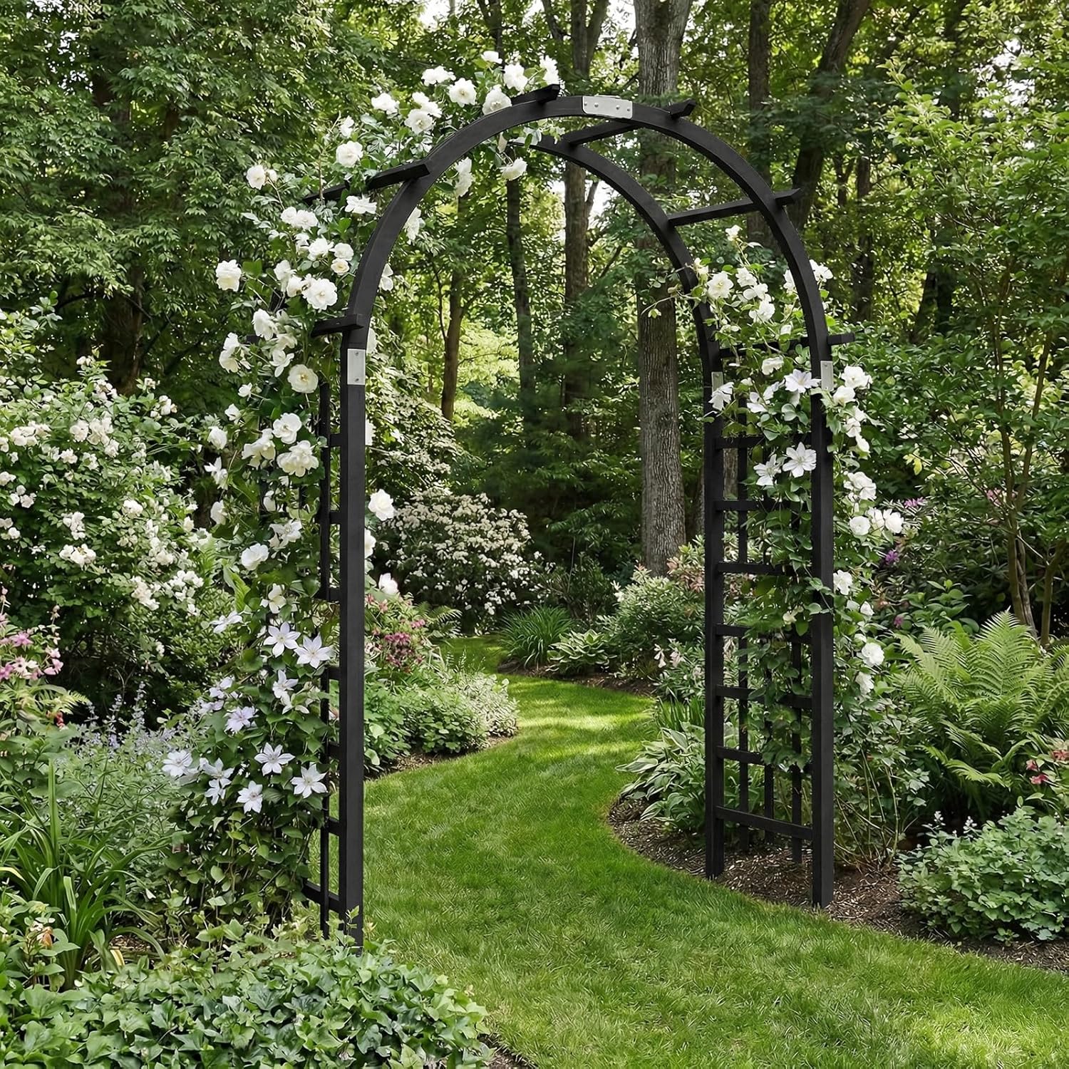 Classic Wooden Garden Arbor And Arches – A Timeless Accent for Your Outdoor Sanctuary Crafted from premium solid wood, this graceful garden arbor trellis combines enduring strength with natural charm to create a focal point that will enhance your outdoor space for years to come. The sturdy construction features reinforced metal connections, providing exceptional stability that allows you to adorn the structure with hanging planters, floral arrangements, or decorative accents without compromising its integrity.Designed for versatility, this elegant wedding arch serves multiple purposes - from creating a romantic wedding backdrop to marking a picturesque entrance in your garden. The wide opening and symmetrical form make it equally suitable for framing pathways, enhancing greenhouses, or adding architectural interest to special outdoor celebrations.The timeless design features a gently curved bow-shaped header and refined double lattice side panels that add visual depth and character to any setting. The square lattice pattern offers not just decorative appeal but practical functionality, providing ample support for climbing roses, flowering vines, or even vegetable plants to create a living canopy of greenery.Assembly is refreshingly simple thanks to the clearly labeled components and straightforward instructions - no specialized tools required. The wood's natural weather-resistant properties ensure your arbor maintains its beauty season after season with minimal maintenance.Whether you're creating an enchanting floral tunnel, establishing a grand garden entrance, or simply adding a touch of sophistication to your outdoor decor, this wooden pergola delivers both form and function. Its classic shape will elevate your landscape while providing a sturdy foundation for nature's most beautiful climbing plants and creative decorative possibilities